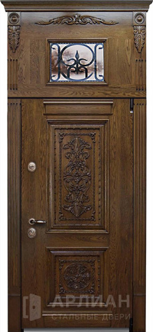 Стальная дверь с фрезерованной отделкой из массива дерева №23