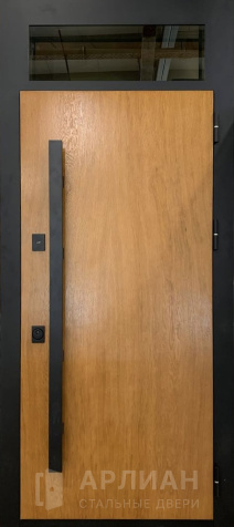 Металлическая входная дверь в коттедж с верхней фрамугой №10
