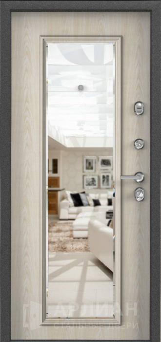 Фото №2 «Белая входная дверь с зеркалом с повышенной звукоизоляцией и темной фурнитурой снаружи №21»