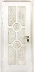 Не менее популярны решения с декоративным металлом: ковкой дверь со стеклами, филенка и вставка дверь со сложными панелями. Здесь помогает покрытием типа медный антик или оттенки под серебро, когда сталь подчёркивается патина и аккуратными линиями. Такие модели одновременно служат элементом защиты и выразительным фасадным акцентом.