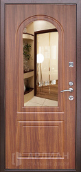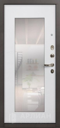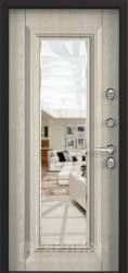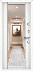 Если важна функциональность, обратите внимание на входная дверь с зеркалом: она визуально расширяет узкий коридор. Варианты, где дверь с двух сторон выполнена в разной отделке (например, снаружи бетон светлый, а внутри дерево под беленый дуб или лиственница), позволяют подстроить дизайн под подъезд и квартиру одновременно. Интересно смотрятся решения «зеркалом панорама» во весь рост, а также сочетания, где зеркалом белый матовый внутри поддерживает светлый интерьер.