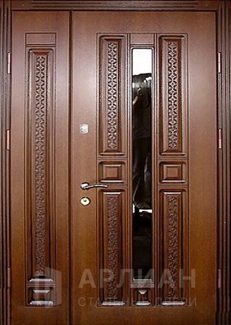 Фото «Двустворчатая входная дверь со стеклом и с витражом №76»