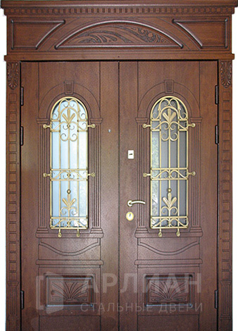 Арочная дверь для частного дома со стеклом входная №65
